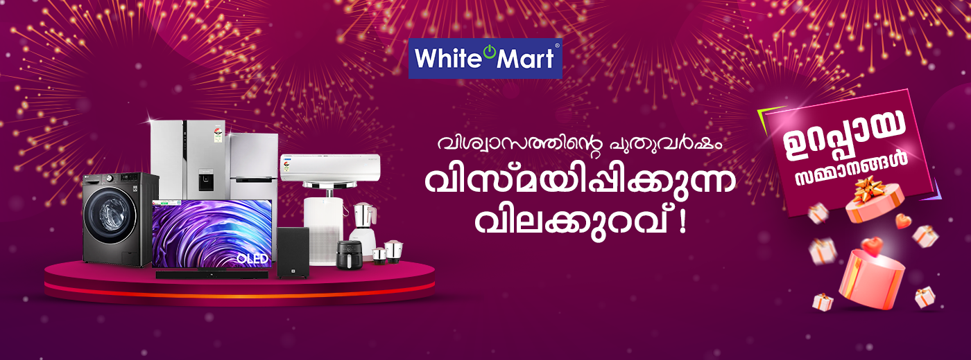 Our two decades of excellence and extensive showroom network make White Mart Kerala’s leading destination for home appliances and electronics. From refrigerators to washing machines, LED TVs to air conditioners, we bring you the latest technology and trusted brands under one roof. Thank you for choosing White Mart, where quality meets trust!